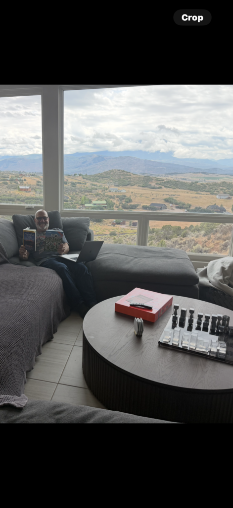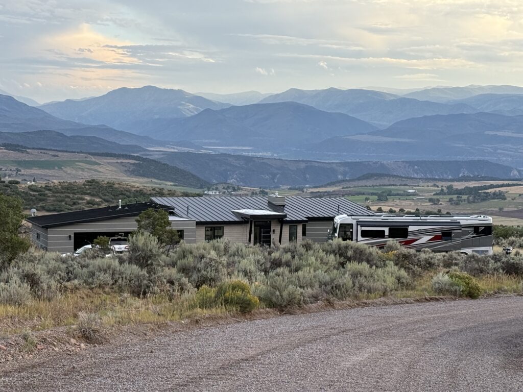 My good friends of over 50 years, Marty and Sharon White, bought land and built a house in Carbondale Colorado. Carbondale is just outside of Glenwood Springs and the back side of the Aspen ski mountain. When Marty built the house, I jokingly told him to make sure he put in a 50amp electric outlet so I could park the motorcoach at this house. He did, so I did. The house, the view and town area is very uniquie and special. It was a wonderful 4 days relaxing, playing pickleball, riding motorcycles and letting Jagger go nuts off leash on the property!